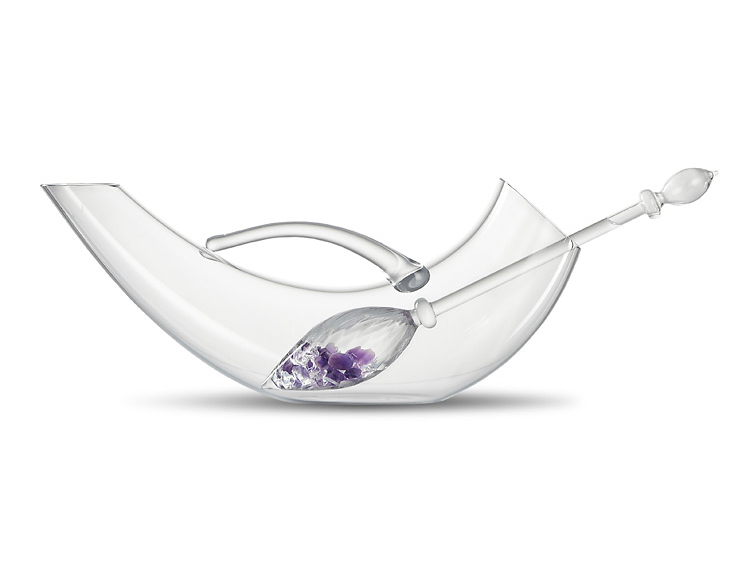 我们的VINO活力宝石棒里面装满了珍贵的紫水晶和透明的石英,它能软化葡萄酒中天然的酸(单宁),让葡萄酒的味道更加柔和,同时保持了其水果的香气。我们的VINO活力宝石棒与独特的醒酒器完美搭配,瓶身曲线优雅,手工制作于欧洲,是一件精美的艺术品。